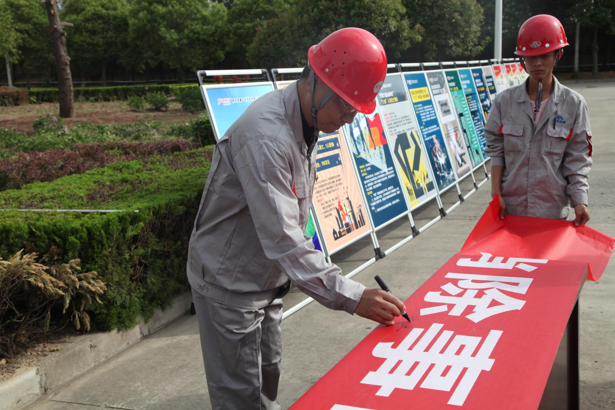 随后,在安环部工作人员的带领下,全体人员进行安全承诺宣誓。最后,全体人员进行了安全承诺签字,并观看了安全生产事故案例展板。