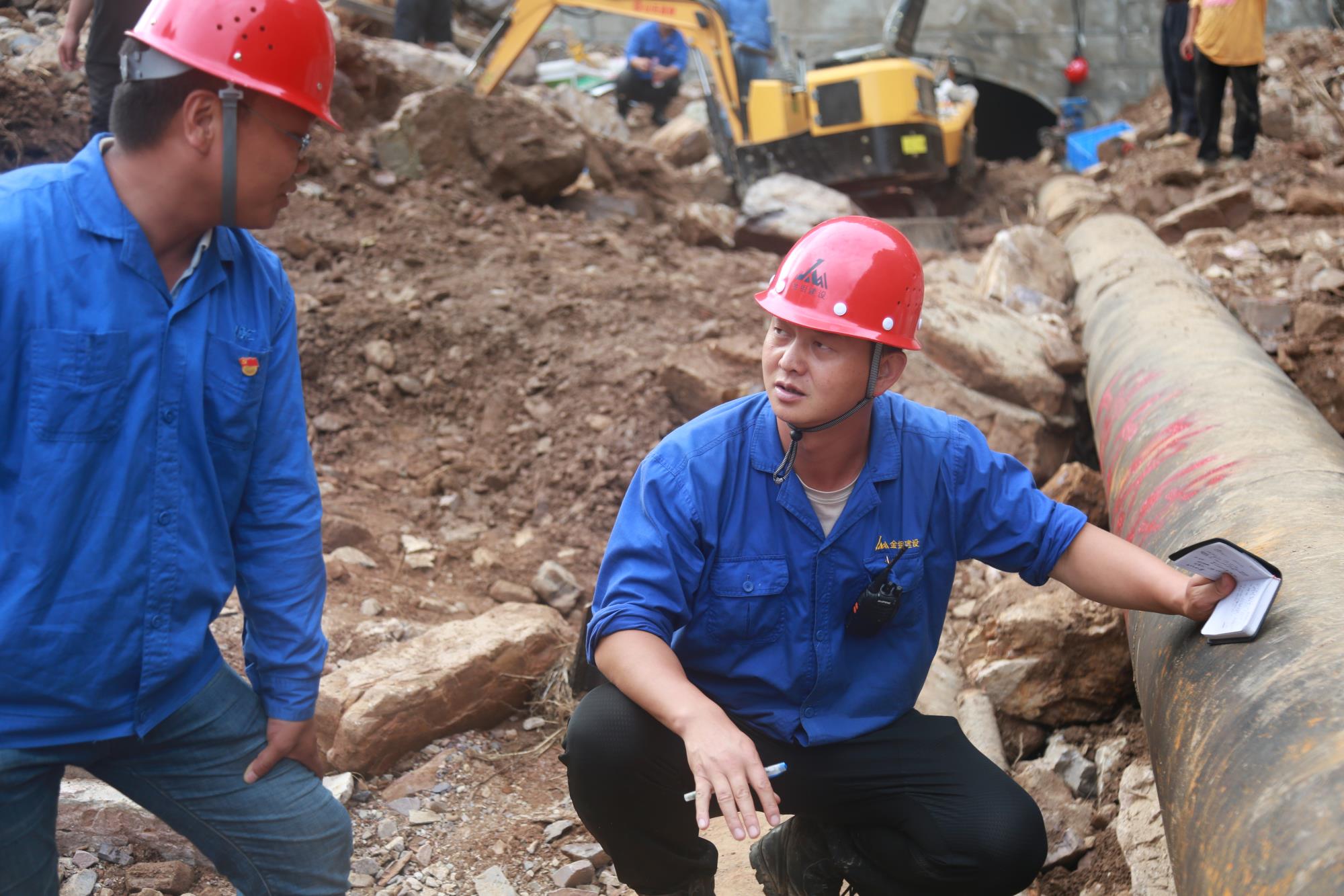 在栗西尾矿库上坝道路打通后,他来不及休息,又接到王家坪尾矿输送管线疏通的重任。他再次一马当先,带领抢险人员爬山涉水、翻山越岭,徒步实地勘察管线受损情况,参与研究制定抢修作业方案。他们背着矿泉水、方便面,手脚并用爬过激流当道的涣家沟路段,脚踩深达80多厘米的洞内淤泥积水,从被乱石掩埋,高度只有30多厘米高的洞口夹缝中艰难爬出。他每天在泥泞中行走20余公里,从不退缩,一往无前。