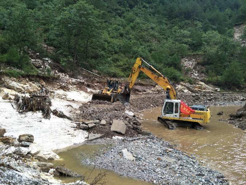 8月6日一早,露天矿召开紧急会议,安排部署任家滩抢险工作,由养路队出动6台工程机械立即赶赴任家滩抢通水毁道路。为了保障电缆等物资运送,打通运送物资的关键通道,按照“先抢通、再完善”的原则,刘锦文带领抢险人员,组织装载机4台、挖掘机2台,第一班26人立即奔赴任家滩进行抢险。他徙步查看每一段水毁道路,制定抢修方案,行程6公里,一不小心掉入水沟,满身是泥,爬出来继续前行。被大水冲断的道路无法通行,他们就地用河道的石块、泥沙挖料修路,并对河床上游进行整修,开挖引流河道。