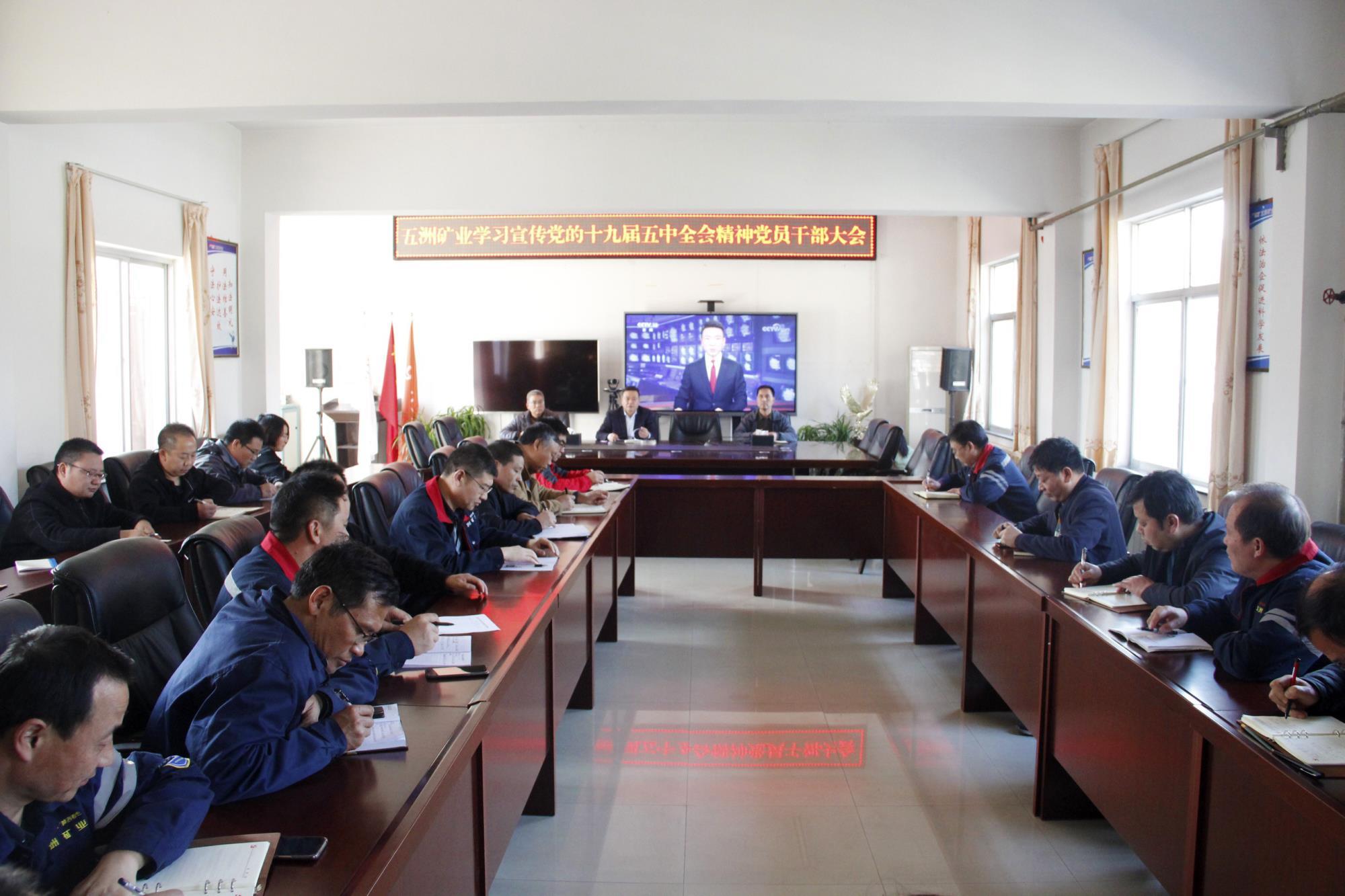 11月11日,五洲矿业以党员干部大会形式传达学习党的十九届五中全会精神。会议对学习宣传工作作出具体安排,要充分利用学习强国平台、门户网站、宣传栏、新媒体等各类宣传载体全方位、广覆盖学习宣传,切实推动党的十九届五中全会精神落地生根、开花结果。