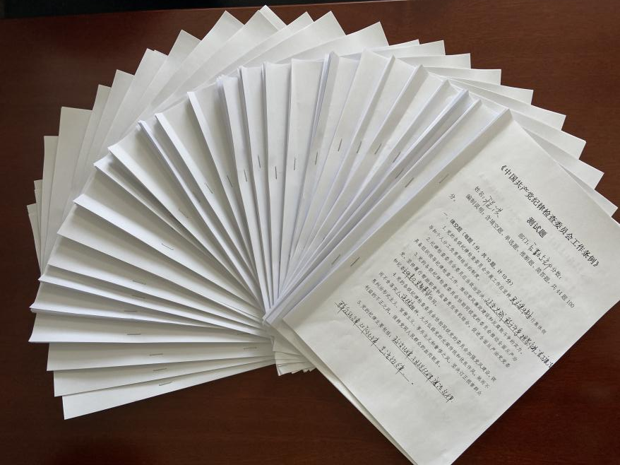 为检验学习成果,2022年6月15日,公司纪委量身定制了一场测试,公司各基层纪检干部共计24人参加了测试。本次测试采取了统一命题、集中组织、闭卷答题的方式,题型包括填空题、单选题、简答题等共44题,答题时长1小时。通过测试,有针对性的进行查漏补缺,夯实纪检干部的理论基础,进一步强化应用水平,提升业务能力。