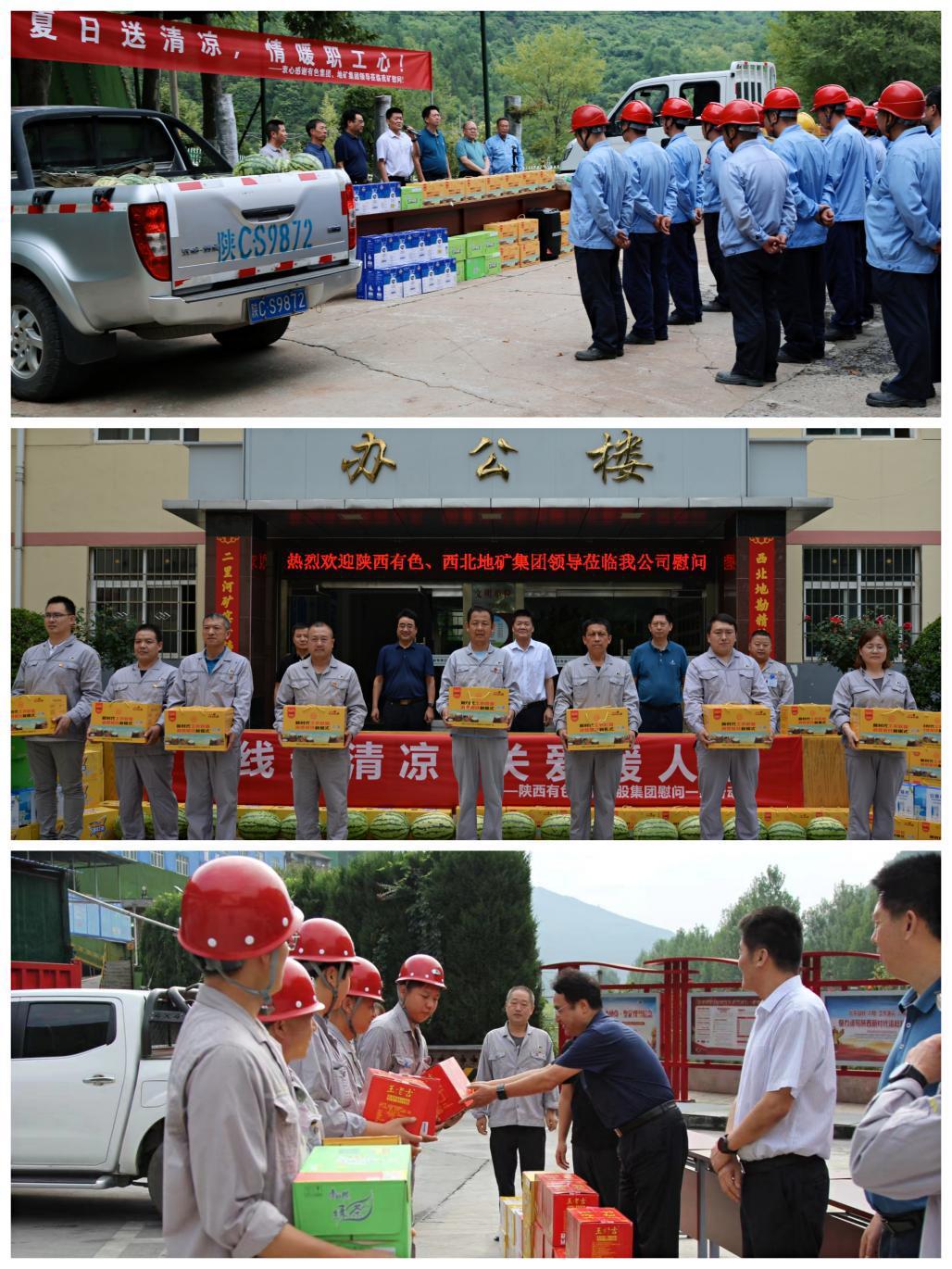 近日正值盛夏酷暑,流金铄石。王小庆一行顶着高温,驱车深入铅硐山矿业公司、铅锌集团凤县分公司、二里河矿业公司开展“送清凉”活动,到采矿工区、选矿车间和生产调度中心等察看运行情况和作业流程,详细了解了生产工艺、技术指标和重点项目建设情况。每到一处,王小庆一行认真听取现场介绍,了解企业的防暑降温保障措施,看望慰问一线职工,询问高温作业条件下的工作、生活状况,并向他们送上西瓜、饮料、茶叶等防暑降温物品。王小庆对一线职工战高温、斗酷暑、保生产的劳动精神和奉献精神给予高度赞扬,叮嘱他们在高温下工作要注意防暑,保障自身的安全健康。
