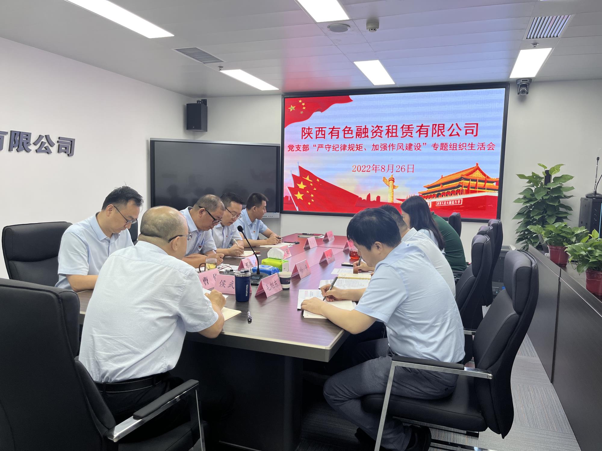 8月26日上午,陕西有色融资租赁有限公司党支部围绕纪律教育学习宣传月活动,召开了“严守纪律规矩、加强作风建设”专题组织生活会,威廉体育williamhill官网资产财务金融部毛旭东同志列席会议。