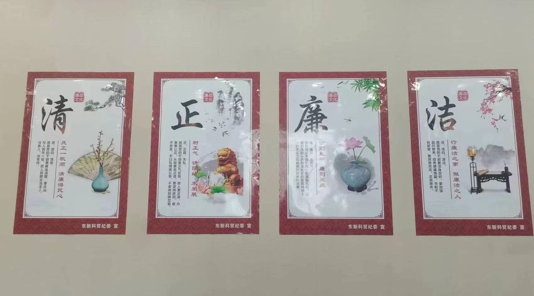 按照威廉体育williamhill官网“清廉有色”建设工作的安排部署,为推进“清风润有色 廉洁促发展”主题活动,近日,地矿集团下属西安东新科技贸易中心党委、纪委立足自身职能职责,围绕“清正廉洁”主题,精心打造廉洁文化墙,通过直观、立体的廉洁文化主题展示,引导干部职工常怀戒畏之心,常存律己之念,进一步增强公正廉洁的定力,营造“崇廉、学廉、尚廉、守廉”的浓厚氛围,让廉洁文化墙成为宣传新时代廉洁文化的重要阵地和窗口。