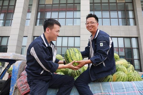 今年,公司工会在夏季送清凉活动中,投入6.3万余元采购公司定点帮扶村坑镇刘家坬村和村企共建帮扶村王家砭镇豪则沟村农副产品,7月19日下午,公司党委副书记、总经理苏旭盛、工会主席胡磊向高温下坚守岗位的一线职工送去西瓜和绿豆,并为他们送上公司的关心关怀,叮嘱大家注意身体,增强安全生产意识,做好夏日防护,防止高温中暑,同时也引导鼓励广大职工积极参与到消费扶贫中来,为乡村振兴贡献力量。