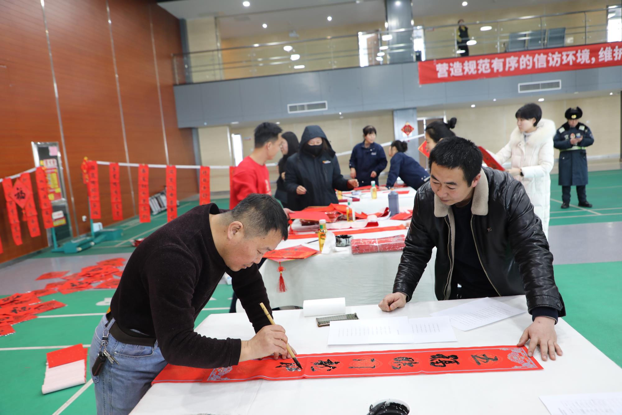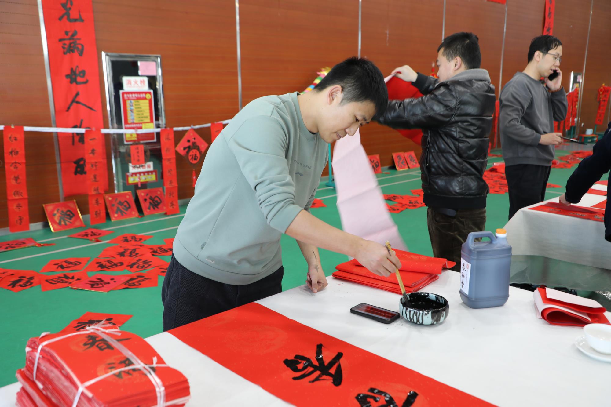 挥毫龙腾启新春,翰墨飘香传福韵。在甲辰龙年新春来临之际,为弘扬传统民俗文化,营造春节欢乐祥和、温馨和谐的节日氛围。由榆林新材料集团公司工会主办,工会书法协会协办的“迎新春 送春联”活动于1月23日在榆林新材料集团文体中心三楼羽毛球场开展,为广大职工送上新春祝福。