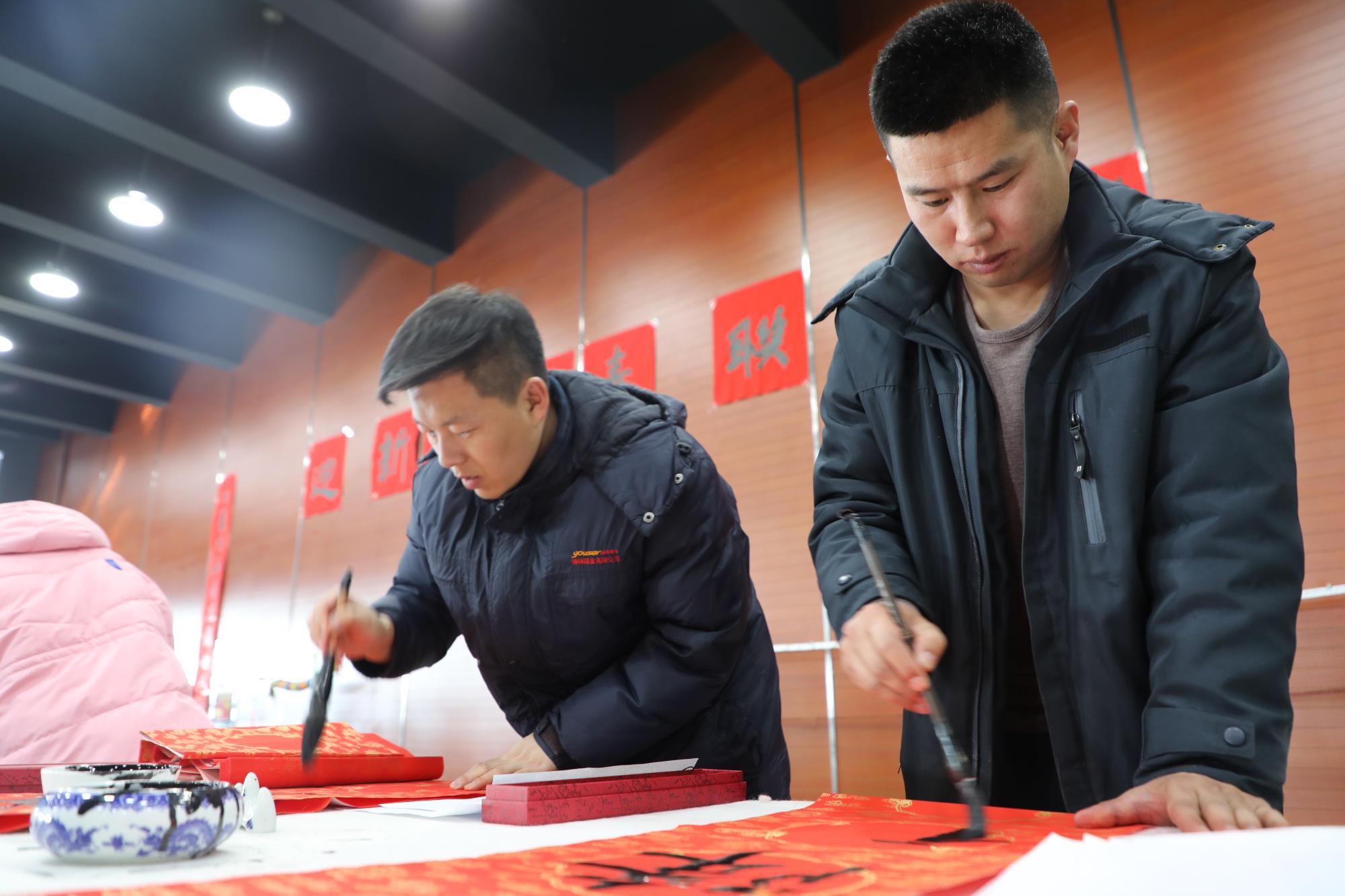 “写春联”是春节传统习俗之一,为做好本次“迎新春 送春联”活动,公司工会提前一个多月安排,公司10名书法爱好者提前书写春联2000余副,福字、福卡1200余张。现场书写春联近1000副,福卡100张。所有春联通过工作人员现场发放、职工现场领取、预留部分各单位工会代发等方式,将所有春联、福卡赠送给广大职工。广大职工纷纷闻讯而来,领取自己心仪的春联,脸上洋溢着笑容和对新春美好的憧憬。部分职工子女也到场助兴,书写春联送上小朋友的美好祝福。活动现场络绎不绝,气氛热闹非凡。