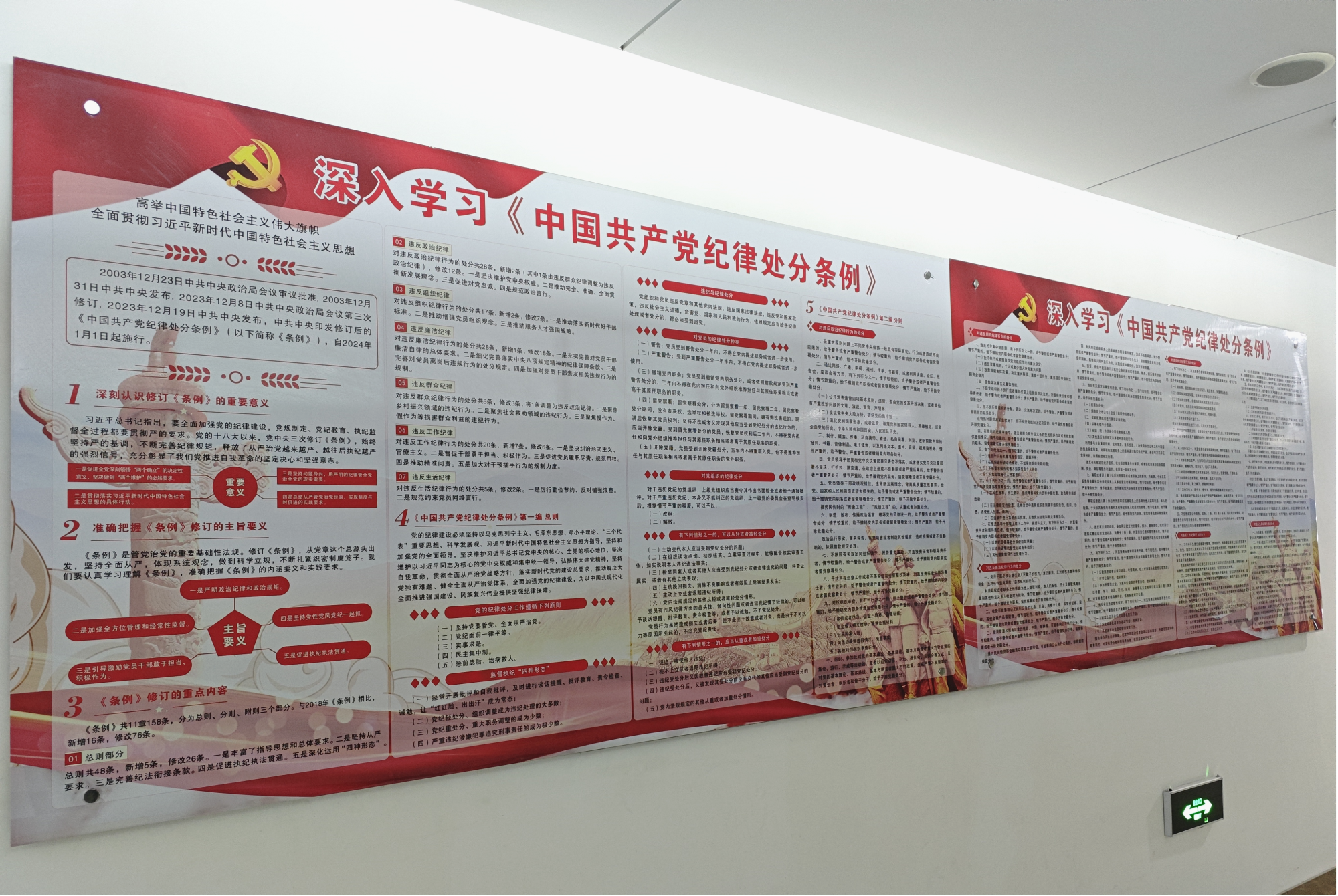 两公司纪委立足实际,选取《条例》的重要意义、主旨要义、重点修订内容以及与公司密切相关的纪律处分篇章,精心制作宣传展板2幅,编制两公司第3期党风廉政学习教育简报,全文刊登新修订的《中国共产党纪律处分条例》,及时通过公司支部书记群、中层干部群等发送《中国共产党纪律处分条例》修订条文对照表以及解读资料,积极推进基层支部学习,营造学习氛围。