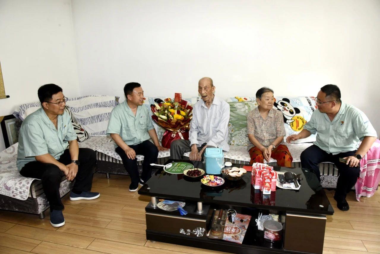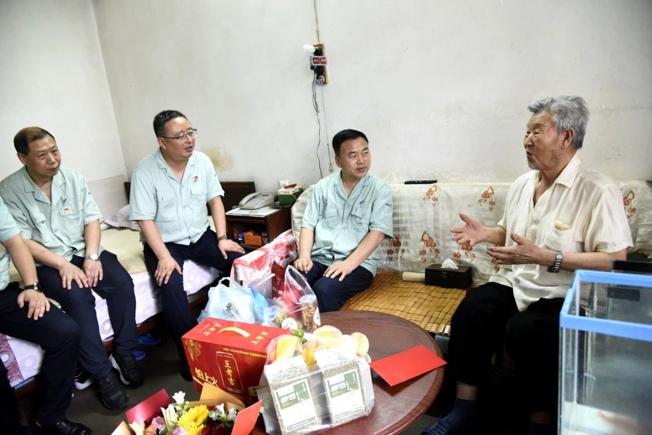 在离休老干部刘兆华和李玉家中,贺治民一行热情地与两位90多岁高龄的老人交谈,详细了解老干部的健康状况和生活情况,感谢他们对党和国家、对集团的忠诚贡献和辛劳付出,衷心祝福他们福寿绵长。