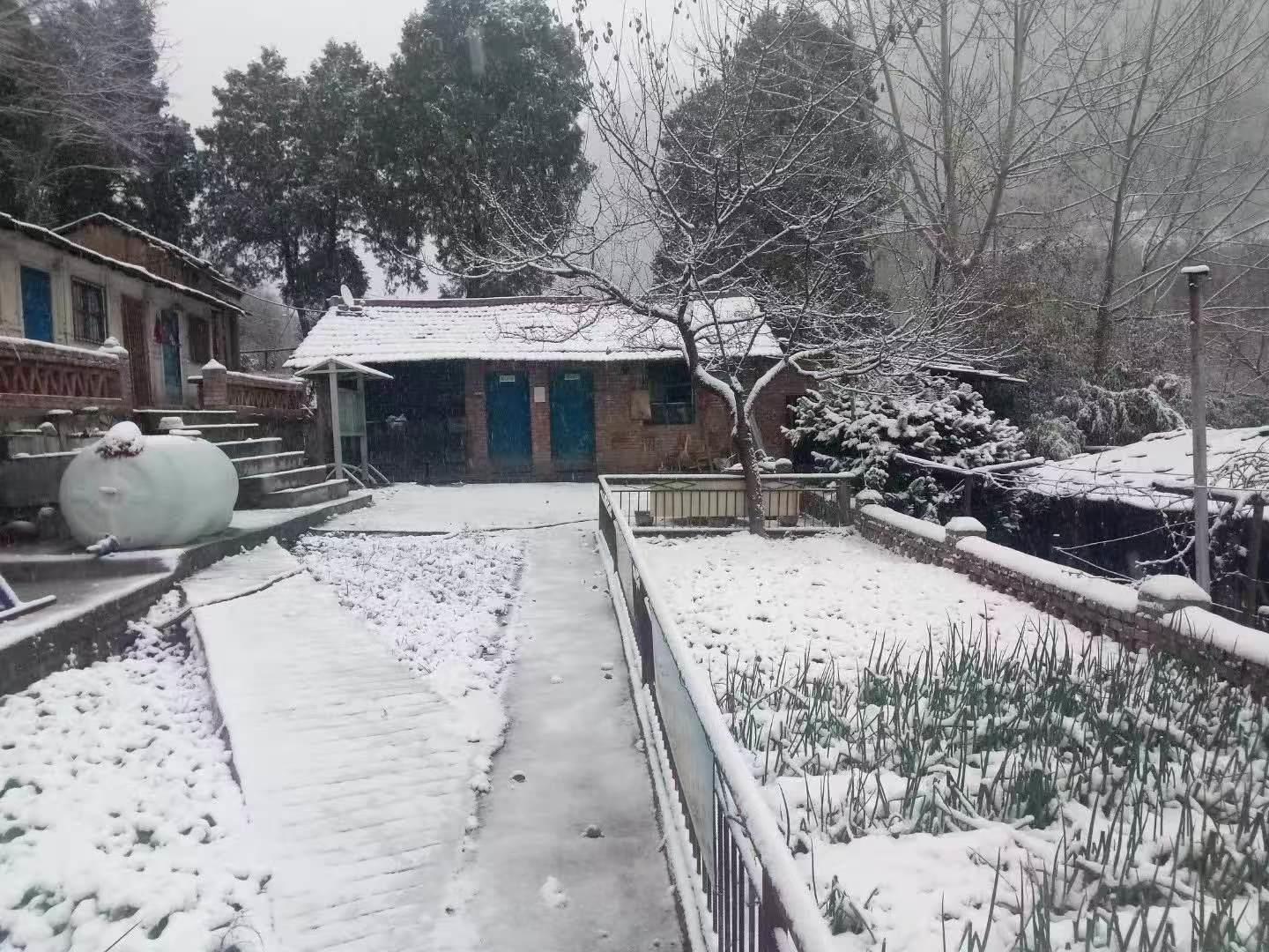 三分队地处偏远的凤县丰岩村,刚开始到这里,我们住在老式的砖瓦房里,之前这里是矿部堆放物资的仓库。后来为了方便开展地质勘查工作,矿部就将这一间收拾出来让给我们住。房子外面有一棵层层如盖的核桃树,树荫遮住了房顶,房子里面常年阴冷。记得那是2018年的5月间,我们的房间里都还需要使用电热毯取暖。冬天更是煎熬,取暖想尽了办法,屋内依然冷似冰窖。除了这些,还要时不时地忍受这里的原住民——老鼠的骚扰。每晚它们在房梁上跑来跑去,扰的人难以入眠。