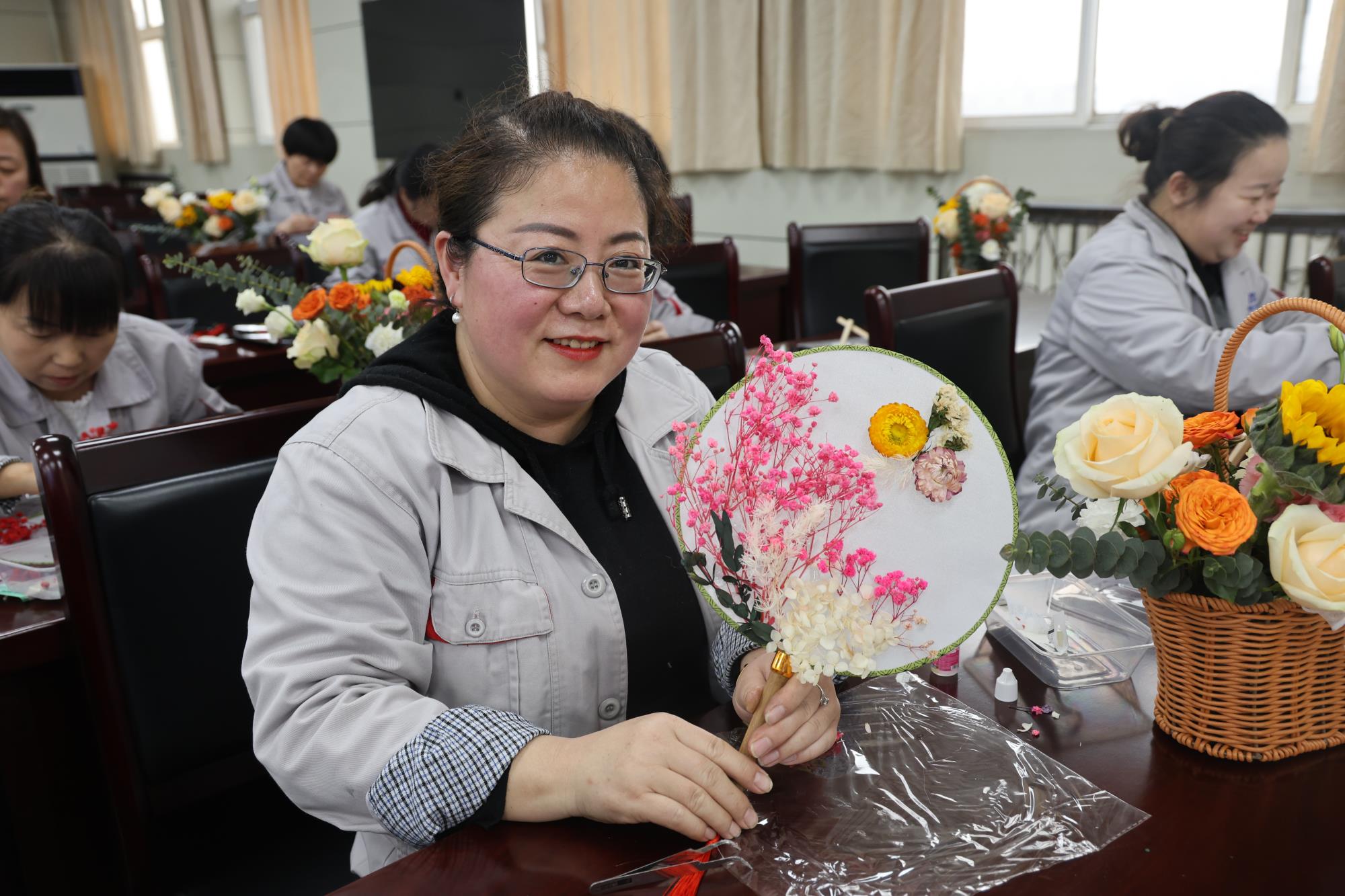 为庆祝第115个“三八”国际劳动妇女节,3月7日下午,陕西美鑫公司女工委开展“‘陕’耀巾帼志·建功谱新篇”主题系列活动之“插花拾趣 悦享生活”、“巧手生花,制扇‘至美’”团扇DIY活动,来自陕西美鑫各单位约60余名女职工参加活动。陕西美鑫公司党委副书记、工会主席杨亚科,工会副主席张晓进,党委宣传部副部长、女工委主任刘芳婧,工会办公室主任王庚出席活动。