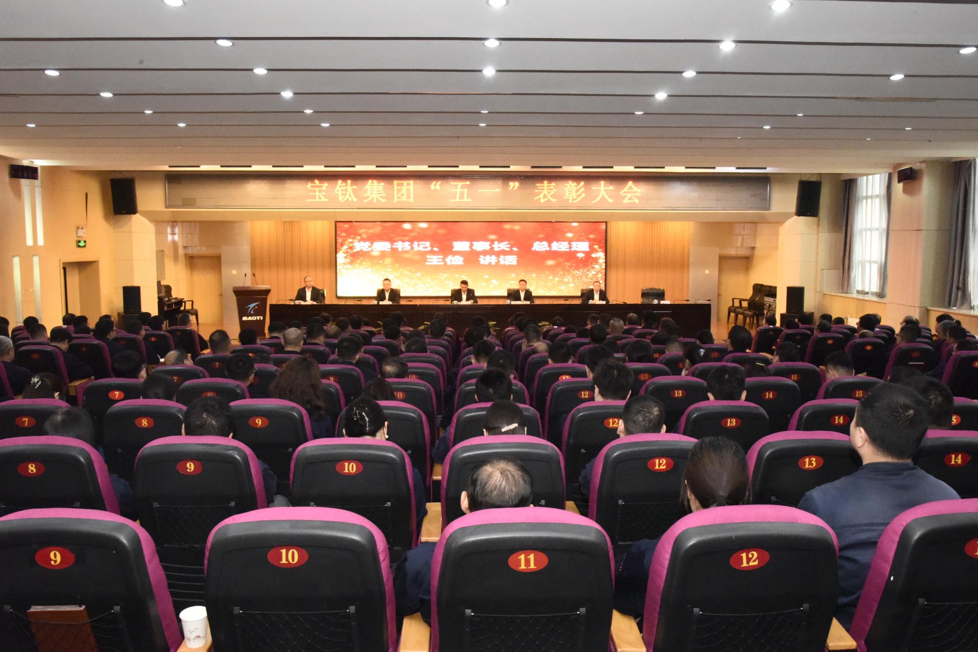 4月28日下午,宝钛集团在宝钛宾馆七楼学术报告厅召开“五一”表彰大会。宝钛集团党委书记、董事长、总经理王俭出席会议并讲话,党委副书记、工会主席贺治民主持会议。
