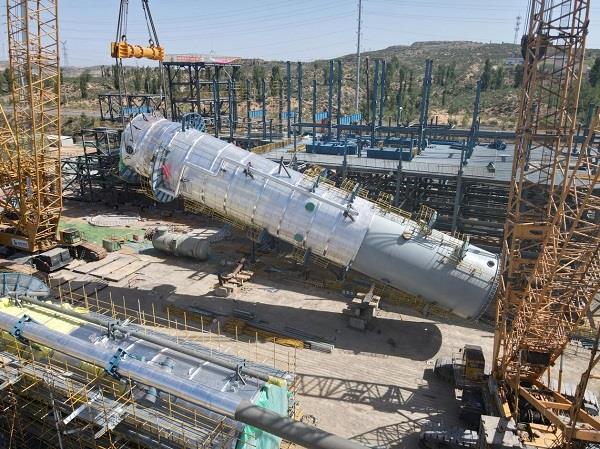 随着下达起吊指令,在两台大型吊车的精密协作下,225吨重的精馏塔下段稳稳升起,顺利安装就位。这一成功,标志着天瑞硅材料电子级多晶硅产业升级项目正式从土建施工阶段迈向机电安装施工阶段,为天瑞硅材料打造高端电子级硅材料品牌、实现高质量发展奠定了坚实基础。