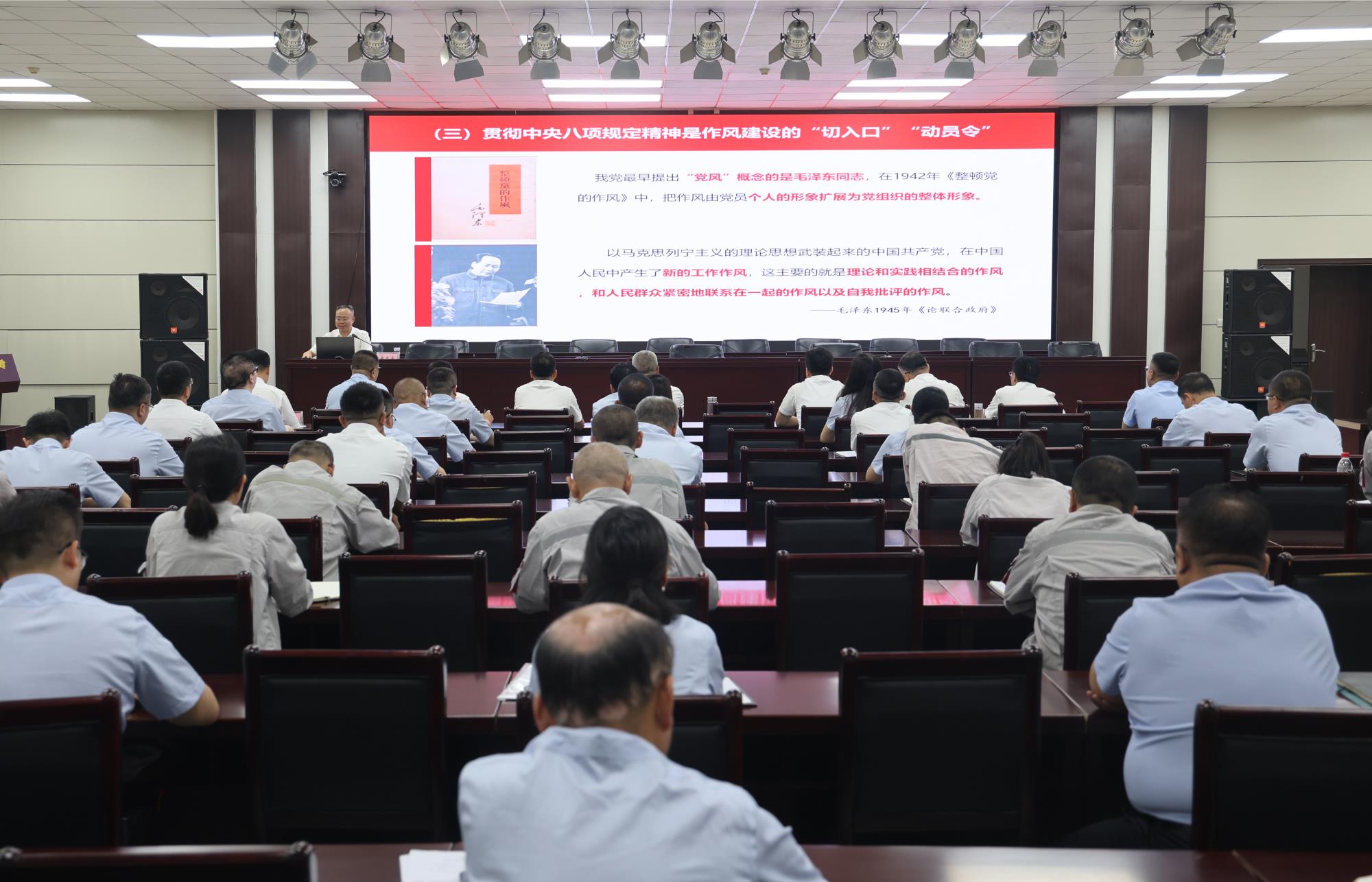 6月30日,威廉体育williamhill官网党委委员、副总经理黄忠良以“锲而不舍落实中央八项规定精神,以作风建设新成效赋能高质量转型升级”为主题,为陕西美鑫公司党员干部讲授深入贯彻中央八项规定精神学习教育专题党课。陕西美鑫公司领导班子成员,机关各部门负责人,二级单位党组织负责人、综合办公室主任、党务专责,铝镁合金分公司电解二车间党员代表共计50余人聆听党课。