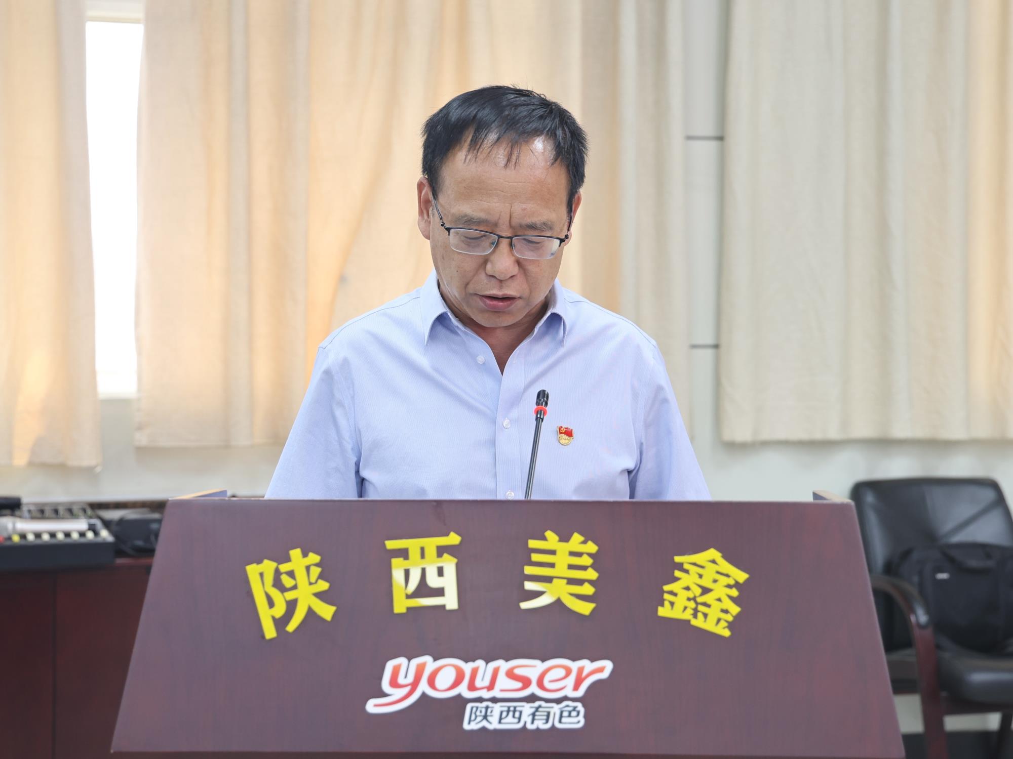 陕西美鑫公司党委副书记、董事、总经理陈万胜宣读了公司党委表彰决定,对20名优秀共产党员、5名优秀党务工作者以及5个先进基层党组织予以表彰并颁发荣誉证书及奖牌。