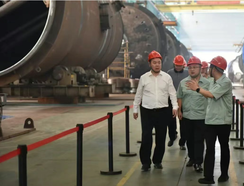 在南京宝色股份公司,莫勇深入车间及项目实地详细了解特材非标高端装备制造行业发展、市场开发、科技研发、队伍建设等情况,并听取宝色股份生产经营及发展规划的汇报。