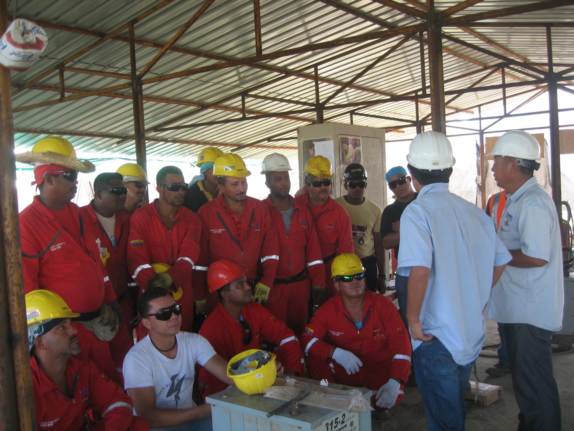 西安勘察设计院承接的海外工程委内瑞拉中央电厂岩土施工项目,对外籍员工进行班前安全思想教育。