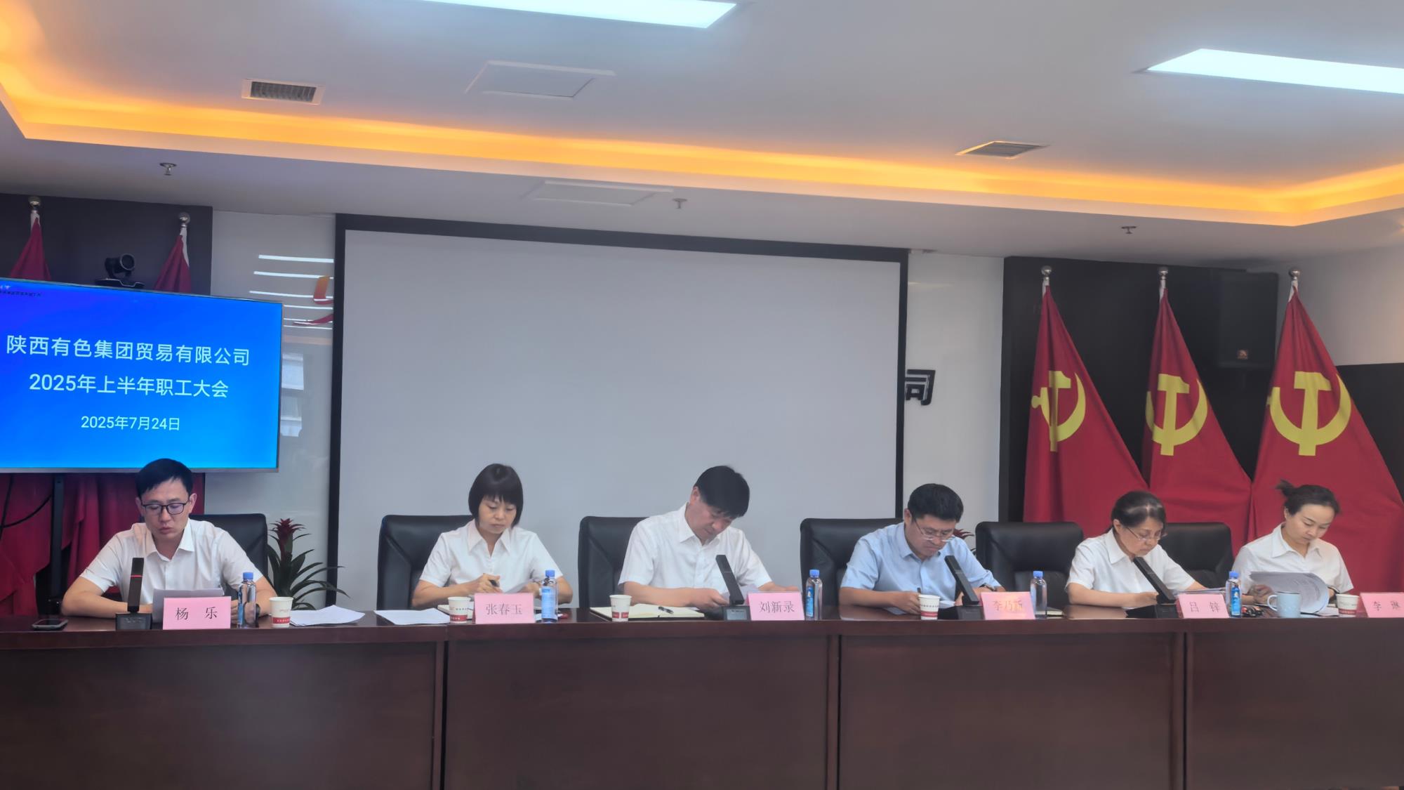 7月24日,陕西有色贸易公司召开2025年上半年职工大会。党委书记、董事长刘新录出席会议并讲话,党委副书记、总经理李乃新作工作报告,党委委员、总会计师、副总经理张春玉作财务工作分析,党委委员、纪委书记吕锌作党建工作报告,党委委员、副总经理杨乐主持会议。