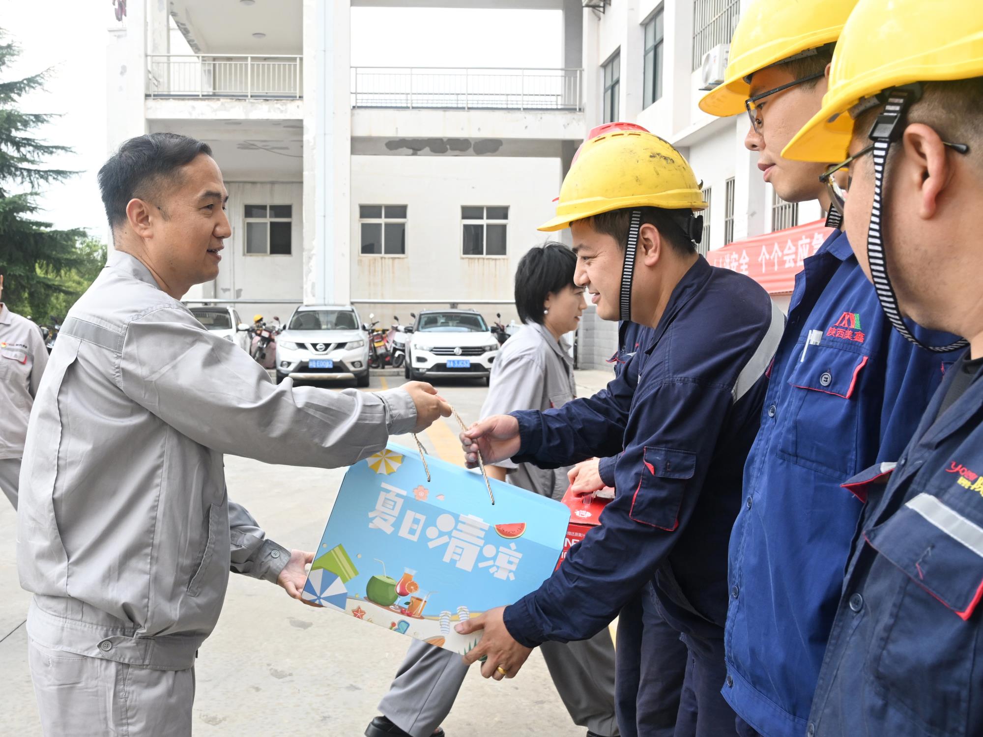 “天气炎热,一定要注意劳逸结合,要多喝水,感觉身体不适要立即报告休息……”杨亚科将集团公司工会准备的慰问品交到在场职工手中,仔细询问大家的工作强度、作息安排以及防暑降温方法,反复叮嘱大家要增强自我保护意识、确保高温作业安全。同时现场要求各基层单位务必将职工的身体健康放在首位,严格落实陕西美鑫公司各项防暑降温措施和安全生产规定,切实做好后勤服务保障工作,科学调整作息时间,全力为一线职工创造安全、舒适的工作环境,推动职工健康与安全生产实现“双提升”。