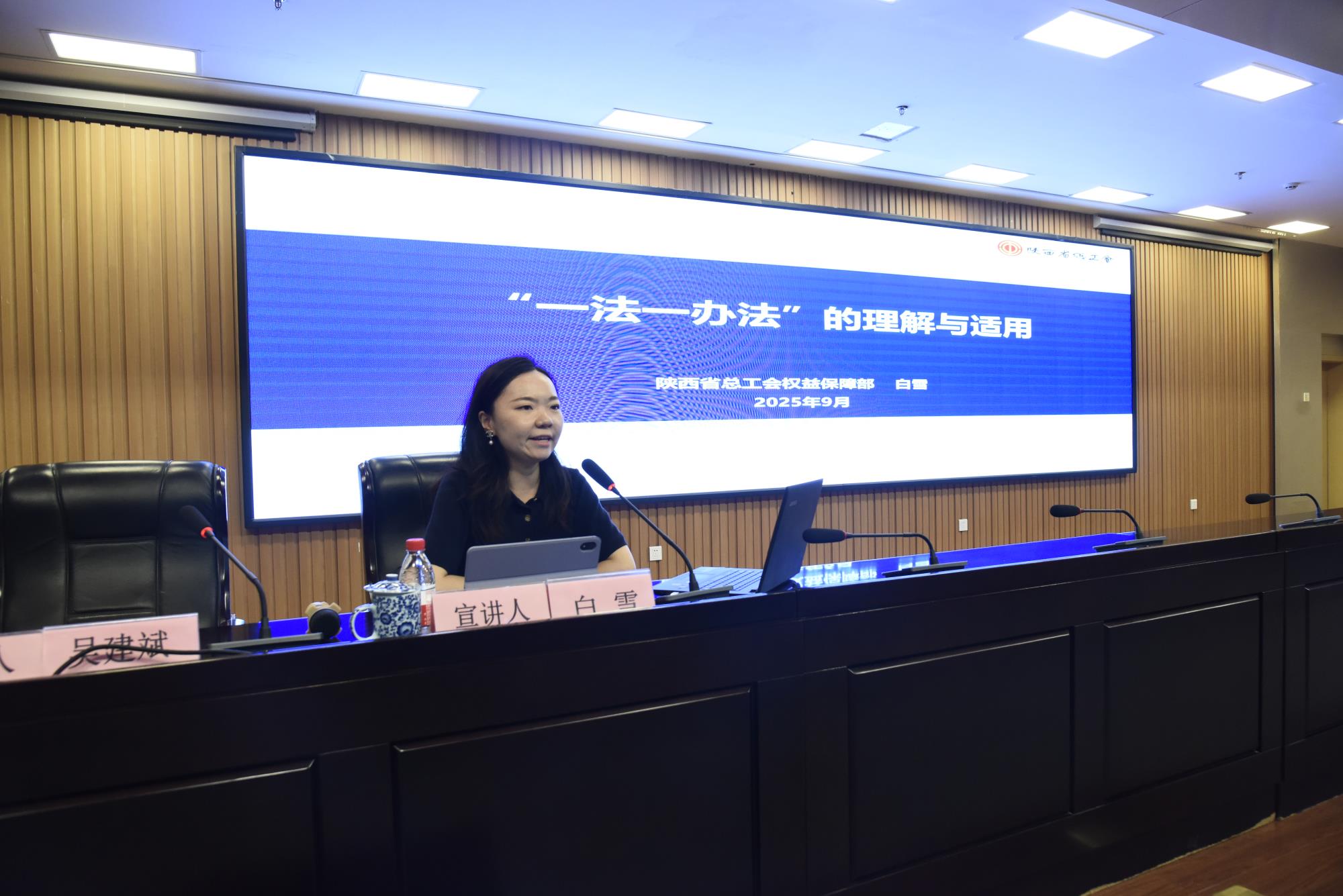 宣讲围绕《中华人民共和国工会法》与新修订的《陕西省实施<中华人民共和国工会法>办法》(以下简称《实施办法》)的修订背景、重要意义展开解读,详细梳理工会组织基本原则、主要任务、权利义务、财产经费及法律责任等关键条款,重点阐释《实施办法》贴合陕西产业实际的亮点特色,助力与会人员精准把握法规要义。宣讲结束后,各企业工会表示将当好 “宣传员”“实践者”,推动法规精神覆盖车间一线,以法治手段优化工会工作、维护职工权益。