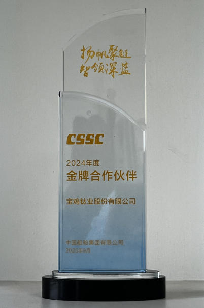 近日,中国船舶集团有限公司(以下简称“中船集团”)举办了以“扬帆聚链 智领深蓝”为主题的产业链供应链大会。作为钛及钛合金材料领域的代表,宝鸡钛业股份有限公司(以下简称“宝钛股份”)在大会上荣获2024年度“金牌合作伙伴”称号。宝钛股份总经理张海龙带队出席会议并领奖。