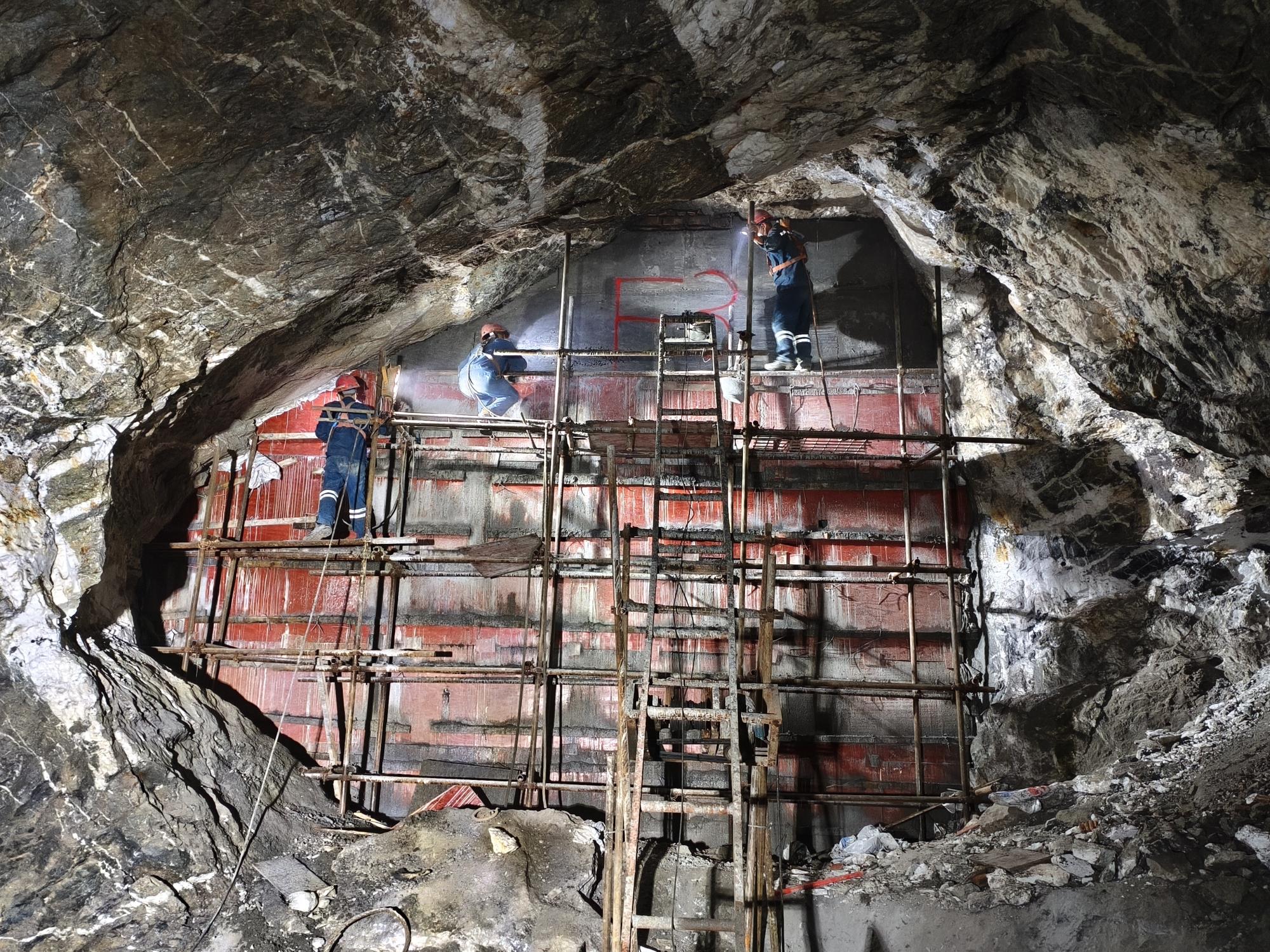 在封堵工艺上,团队更是巧思频出,用红砖封堵替代传统混凝土封堵,封堵效率提升1倍,成本降低22%。创新采用内弧形红砖砌筑工艺,有效分散了充填膏体对墙体的压力,彻底杜绝封堵墙倒塌漏浆风险。通过尝试钢网与土工布组合的柔性封堵方案,不仅提高了施工效率,待充填物凝固后,钢网与土工布还可回收复用,实现了降本与环保的双重收益。