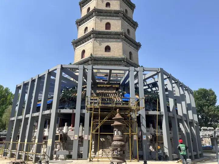在接下来的日子里,团队展开了密集的技术攻关。有人研究大佛寺的加固案例,有人调阅开元寺塔的监测数据,但这些经验在超高层石质文物面前仍显不足。转机出现在一次跨部门技术交流会上——“何不把钢结构与脚手架结合?”这个源自岩土工程领域的思路,为困境中的项目带来了新的可能。