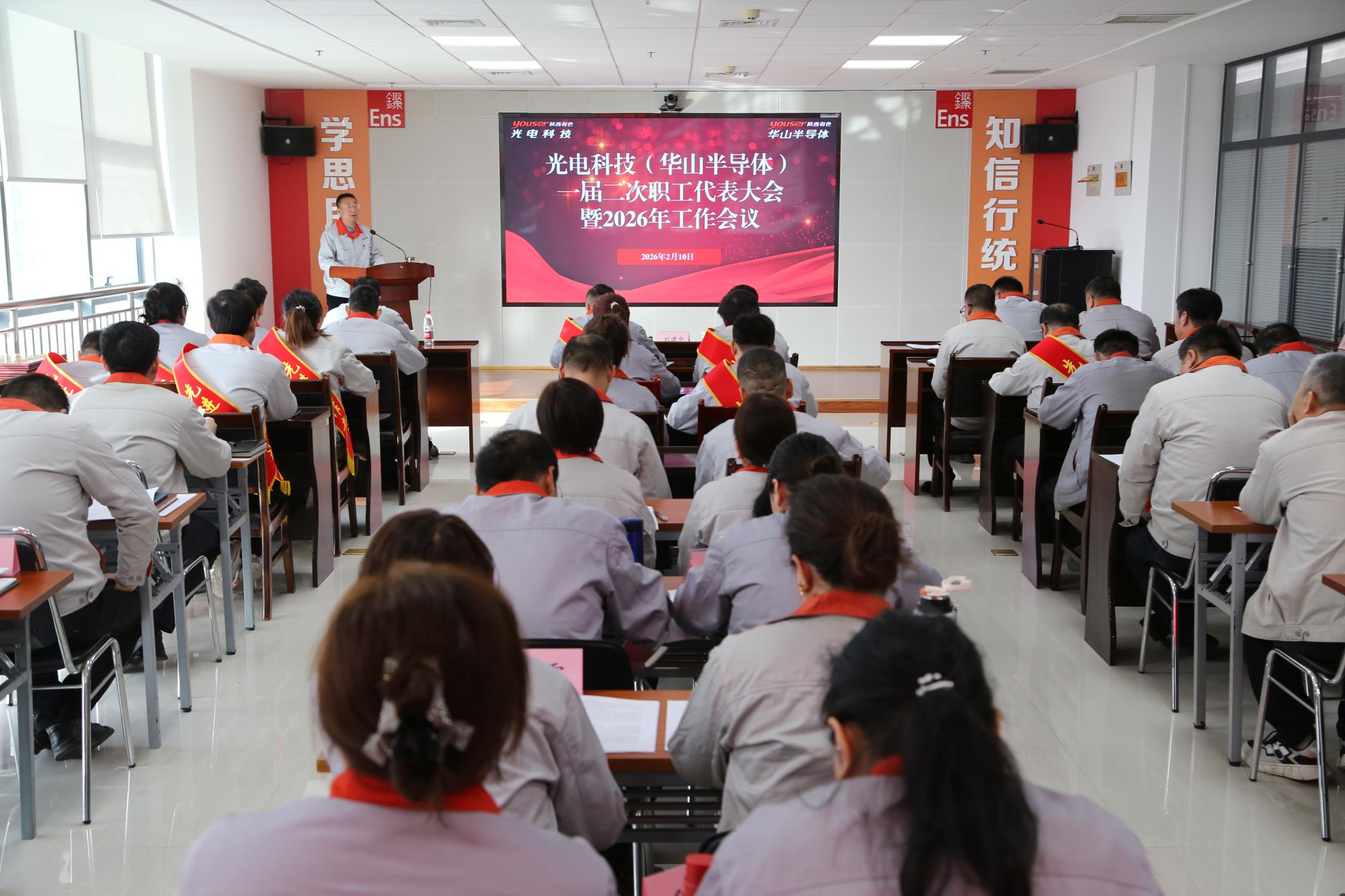 2月10日,光电科技(华山半导体)召开一届二次职工代表大会暨2026年工作会议。会议深入贯彻落实集团公司三届四次职代会暨2026年工作会议精神,全面总结2025年及“十四五”发展成效,科学谋划“十五五”发展蓝图,系统部署2026年重点任务,动员全体干部职工以实干担当,奋力谱写高质量发展提质见效新篇章。公司党委书记、董事长刘建中出席会议并讲话。公司领导班子成员,职工代表、列席代表,以及受表彰的先进集体代表和先进个人参加会议,工会主席郑兴贵主持会议。