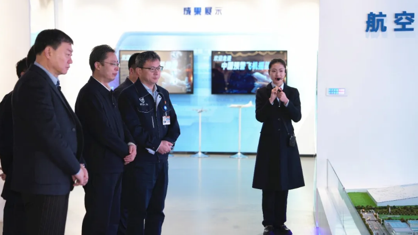 吴群英一行先后参观了陕飞展厅、翼身对接厂房、表面工程中心,了解了陕飞发展历史与科研生产经营情况。