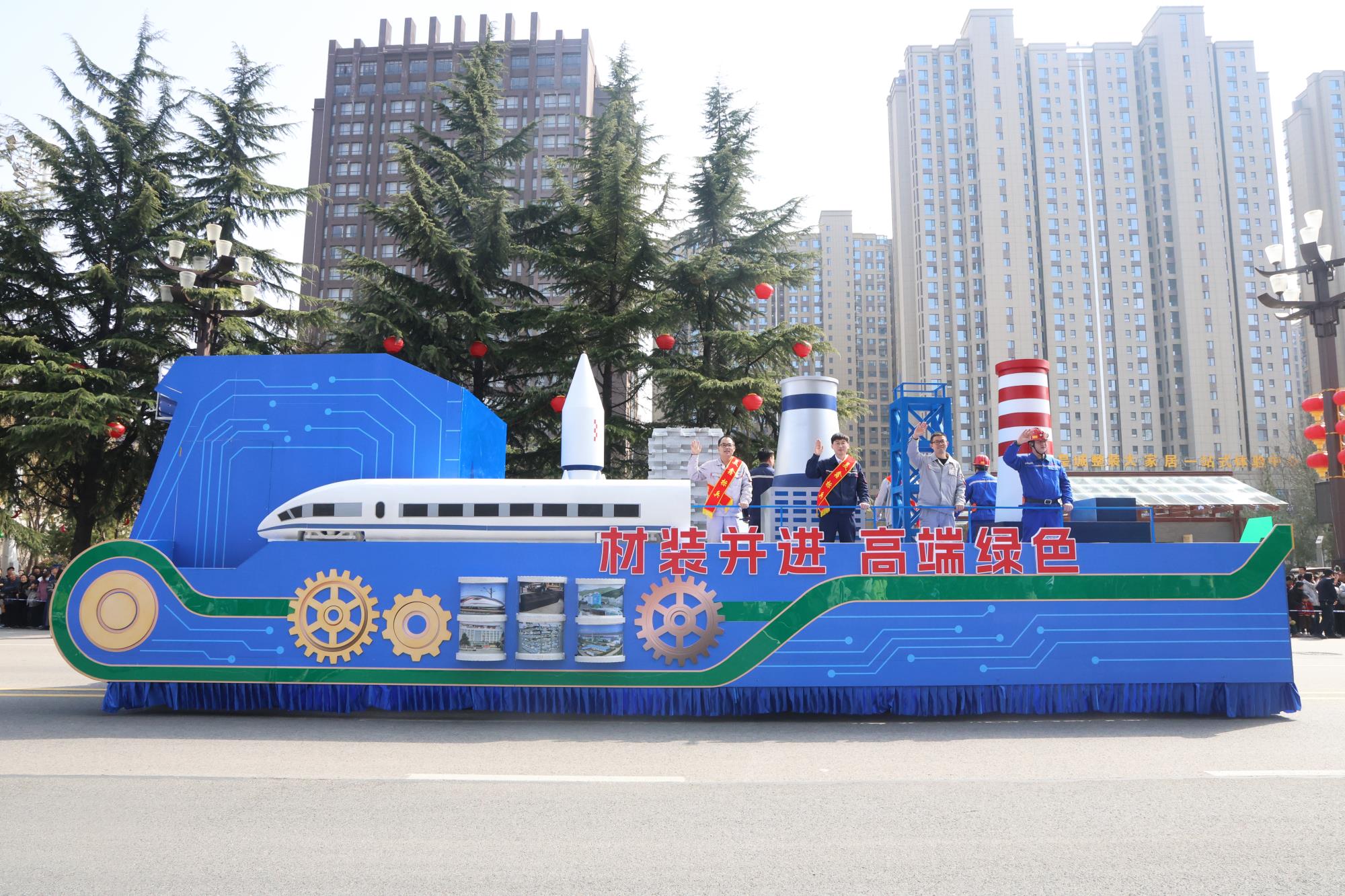 行进在方阵最前方的是美鑫公司精心打造的彩车,这辆以“煤电铝循环经济发展”主题为核心设计理念的彩车,通体采用蓝色工业风为主色调,以旗舰向前、迎风破浪为主造型,寓意企业在市场经济的大潮中乘风破浪、行稳致远。车身中央以冷却塔、铝锭等为造型元素,直观展示美鑫公司“煤—电—铝”循环经济产业链的完整脉络,充分彰显美鑫公司在推动循环经济发展过程中的积极探索与不凡成果,让围观市民在感受节日喜庆的同时,也对家门口的现代化国有企业有了更直观的认识。