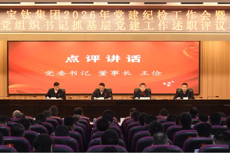 3月10日,宝钛集团2026年党建纪检工作会暨2025年度党组织书记抓基层党建工作述职评议考核会在宝钛宾馆七楼学术报告厅召开。宝钛集团党委书记、董事长王俭出席会议并讲话,宝钛集团党委副书记、总经理陈战乾主持会议。