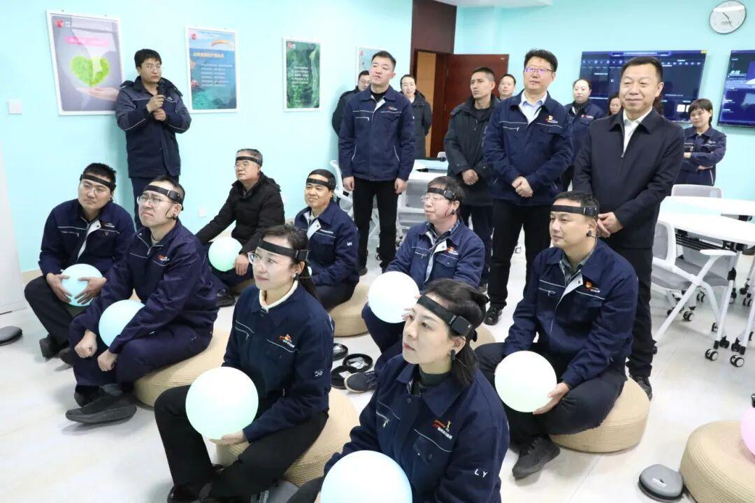 仪式现场,红绸轻启,牛虎明、王新权共同为“心动力”职工健康驿站揭牌。驿站配备先进的心理测评系统、身心放松设备和智能体验设备,通过建立动态心理档案、提供私密心理咨询、组织团体互动服务、开展智能设备体验,构建起全方位的心理健康服务体系。