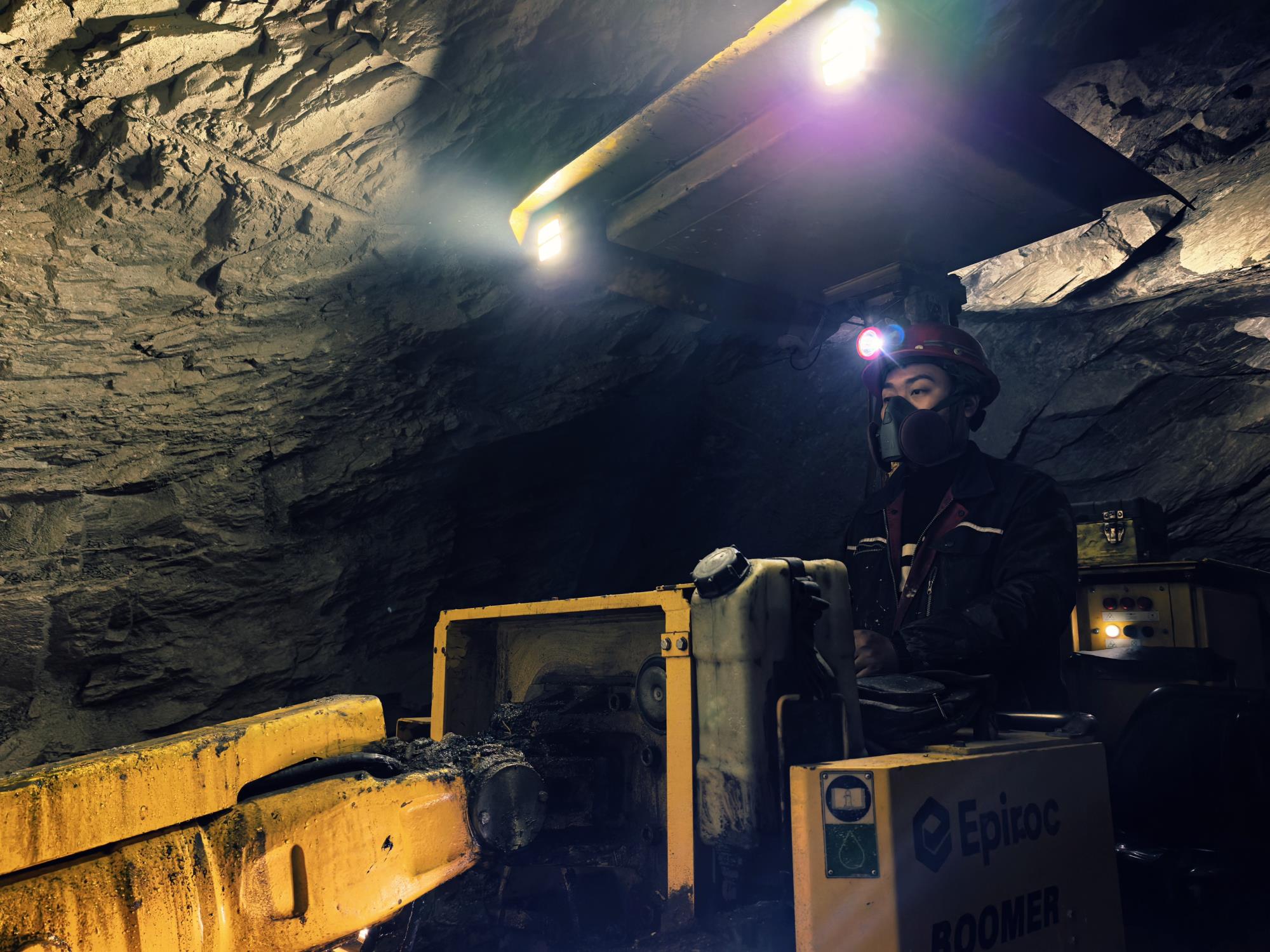 四方金矿井下人员正在操作掘进台车