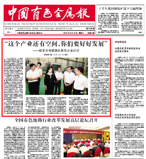 中国有色金属工业协会副会长朱景兵陪同考察。各有色企业所在省、自治区的人大、政府部门主要领导陪同考察或到驻地看望。