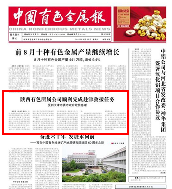 陕西盛华冶化公司是陕西有色集团冶金矿业公司控股子公司,上半年生产硅钙合金7986吨,是全球最大的硅钙合金生产企业。在此次救援工作中,公司高度负责、积极配合、无私奉献,出色地完成了援助任务,受到了现场指挥部和天津市安监局有关领导的高度赞扬。
