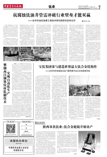 中国有色金属报:宝钛集团参与建造世界最大钛合金结构件