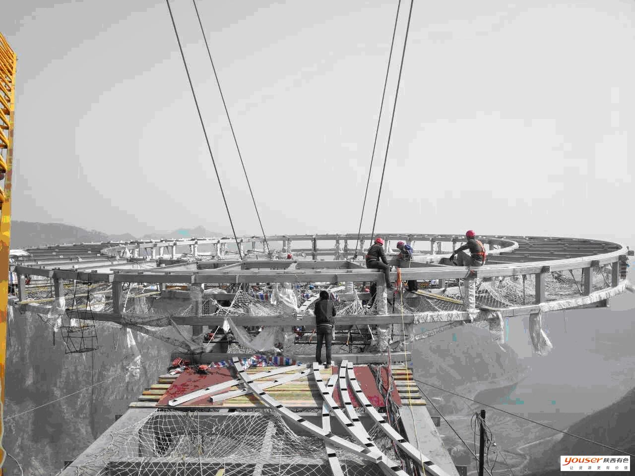 观景台施工单位由北京龙安华诚建筑设计有限公司和华诚博远建筑工程有限公司承担。两个公司承担过鸟巢、中央电视台、北京国贸三期等超级工程的设计建设,在距山底600多米高的悬崖上建造世界级玻璃观景平台,大型结构件的运输和安装都是极大的挑战。据石林峡旅游项目负责人介绍,截至目前,已经有500多家旅行社及众多游客预定了该体验项目,游客人数远远超过预期。