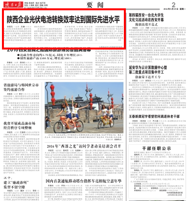 新华网、凤凰网、陕西日报: 陕西企业光伏电池转换效率达到国际先进水平