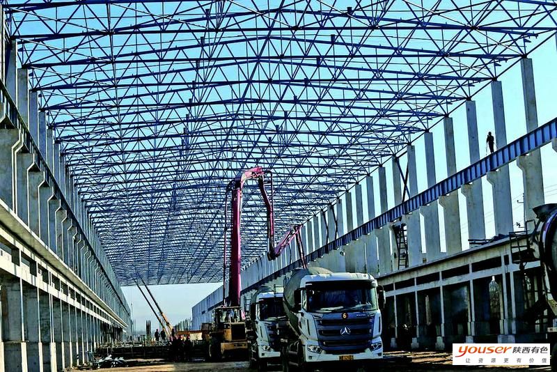年产30万吨铝镁合金项目是陕西美鑫产业投资有限公司航汽铝循环经济产业集群项目的重要组成之一。项目总投资33亿元,占地面积为922亩,在全国首家采用脱硫设备,强化环保意识,坚持市场导向,加快产业转型升级步伐,进一步拉长产业链条,发挥产业集群效应,实现绿色低碳可持续发展。美鑫项目统一规划、设计、建设的煤矿、电厂、电解铝、铝的深加工、物流园等子项目,科学布局,产业链完整,真正做到了资源整合,循环发展。图为正在建设中的铝镁合金项目生产车间。