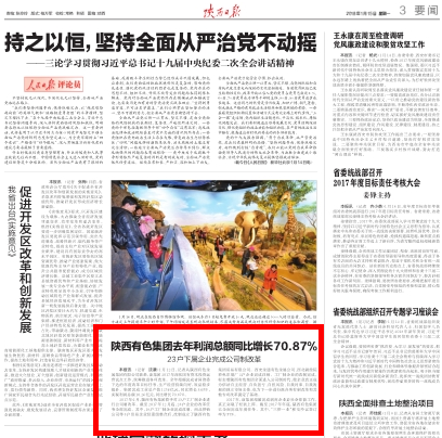 2017年,该集团超额完成剥离企业办社会职能工作,真正实现了轻装上阵。截至2017年年底,陕西有色集团已全面完成年度任务。其中,“三供一业”移交协议签订率为97%。