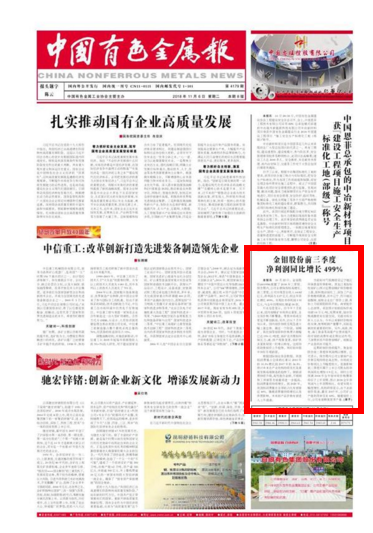 中国有色金属报、陕西日报:金钼股份前三季度净利润同比增长499%