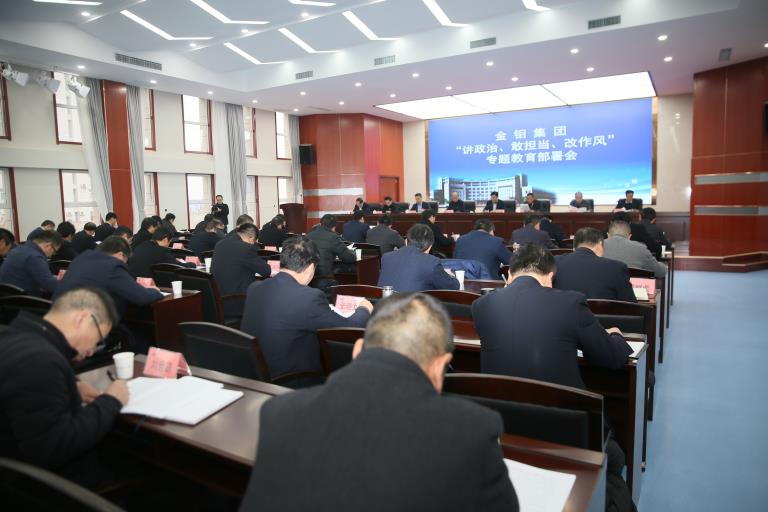 按照陕西有色集团党委的安排部署,12月19日,金钼集团召开“讲政治 敢担当 改作风”专题教育动员部署会。公司领导班子成员、机关部室负责人及各单位党政负责人等100余人参加了会议。