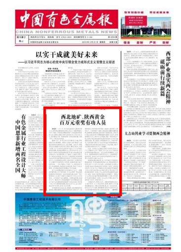 中国有色金属报:地矿集团、黄金集团百万元重奖有功人员