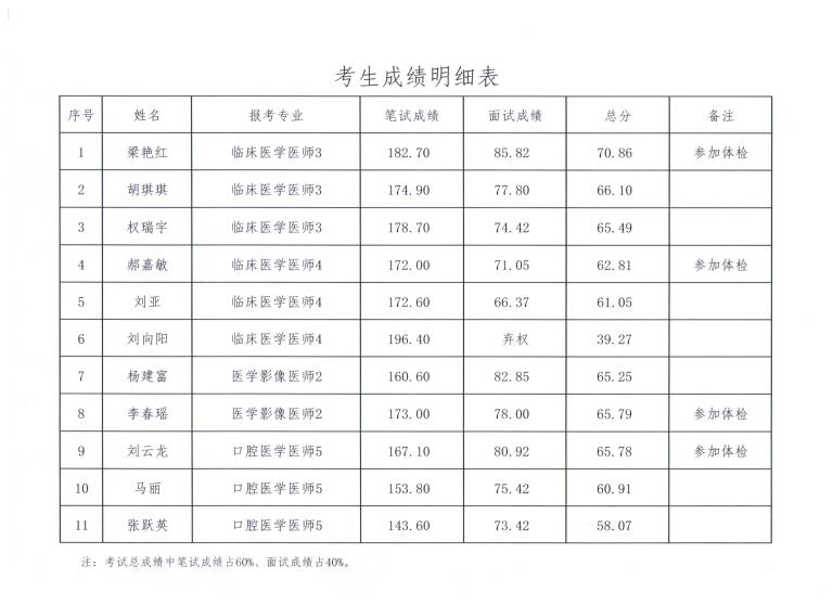 西北有色医院2019年省属事业单位公开招聘面试环节已经结束,依据《事业单位人事管理条例》《陕西省事业单位公开招聘工作人员实施办法》及2019年陕西省省属事业单位公开招聘工作人员公告要求,考试总成绩,按照与岗位招聘计划1:1的比例从高分到低分确定参加体检人员。现将有关事项公告如下: