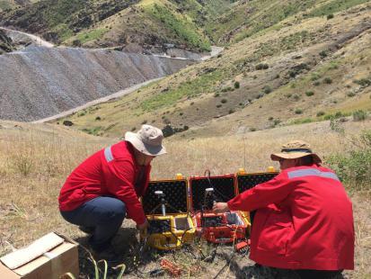 物化探工程部塔吉克斯坦阿尔登托布坎地区—塔中矿业矿区及外围地球物理勘查项目组(班组)在生产过程中开展技术研讨、技术攻关