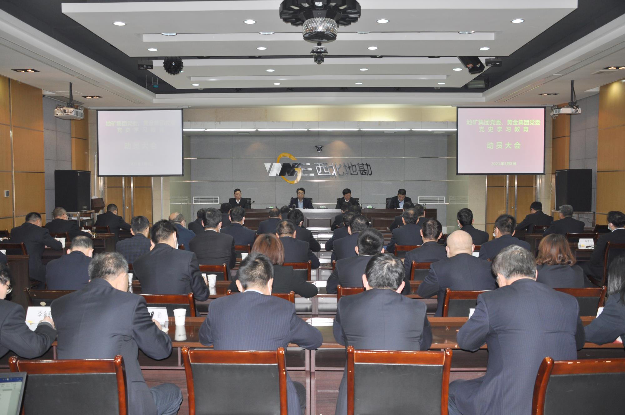 两集团党委书记、董事长、党史学习教育领导小组组长秦西社作动员讲话,地矿集团党委副书记、总经理、党史学习教育领导小组副组长高菊生对两集团党史学习教育实施办法进行说明,黄金集团党委副书记、总经理、党史学习教育领导小组副组长吴春虎作总结讲话。会议由两集团党委副书记、工会主席、党史学习教育领导小组副组长李忠民主持。两集团领导班子成员,总部中层干部及各权属单位党政负责人参加会议。