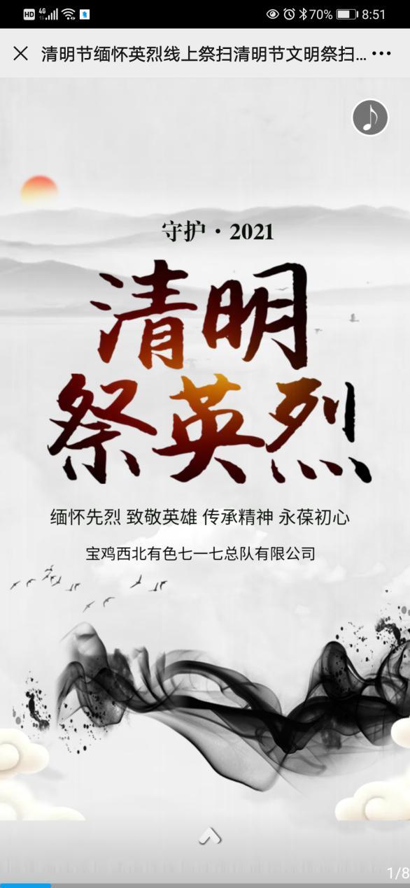 717总队公司微信公众号“清明祭英烈”网上祭扫平台页面