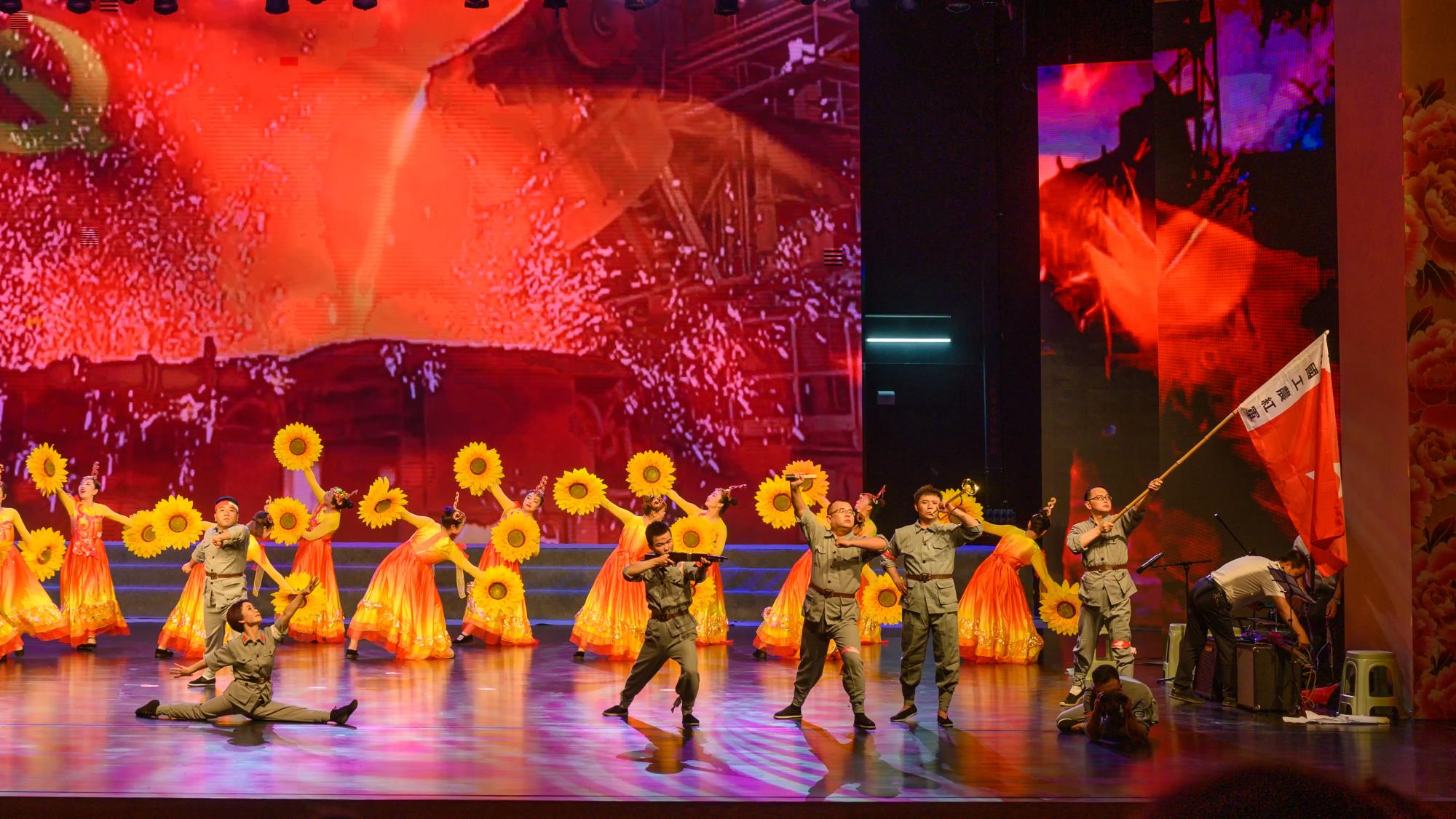 矿业公司表演的情景合唱曲目《映山红》,通过现场情景重现革命故事,演绎了人民群众对红军战士的无限热爱与不舍之情,表达了生活在黑暗之中的苏区人民渴盼红军归来的强烈心声和与黑暗势力殊死搏斗的革命意志,更加诠释了没有共产党就没有新中国。