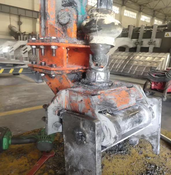 对多功能天车拧头部件进行技改。部分电解槽槽龄较大总高偏高,导致多功能天车阳极扳手行程不够,不能对阳极导杆小盒夹具进行紧固,只能人工登槽紧固小盒夹具,既费力费时又存在极大安全风险。通过讨论试验,在未改变原有安全设计结构的情况下,对多功能天车阳极板手拧头部件进行改造,对拧头部件支架及套筒整体下移加长100mm方形法兰,并对扳手上限位进行调整。改造后不需要人工登槽紧固小盒夹具,极大保障了人员的作业安全,提高了工作效率。