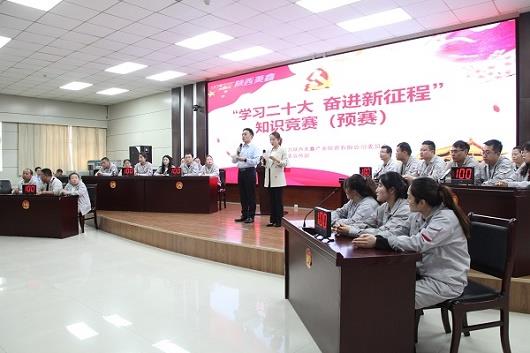 为持续深入学习贯彻党的二十大精神,推动理论学习走深走实、入脑入心,进一步引导广大干部职工把思想和行动统一到党的二十大精神上来,4月27日下午,由陕西美鑫公司党委主办、党委宣传部承办的“学习二十大 奋进新征程”知识竞赛预赛正式开赛。本次竞赛共由8支代表队组成,分别为矿业公司代表队,铜川铝业留守处代表队,质检计量中心代表队,生活后勤服务中心代表队,物流公司代表队以及机关第一、二、三党支部代表队。